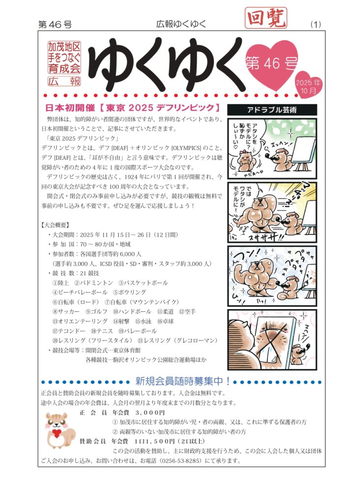 広報「ゆくゆく」第46号完成 2025年10月1日 最終更新日時 : 2025年10月1日 kamoiku-suzuki 広報「ゆくゆく」第46号が完成しました。現在印刷中です。 10月15日の回覧版にて加茂市民の方々へ回覧させていただきます。 会員の皆様へは、個別にお届けいたします。 FacebookXBlueskyHatenaCopy